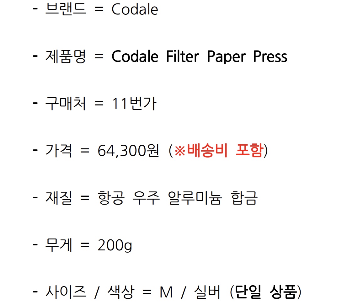 Codale Coffee Filter Paper press라는 제품을 소개해드리겠습니다.